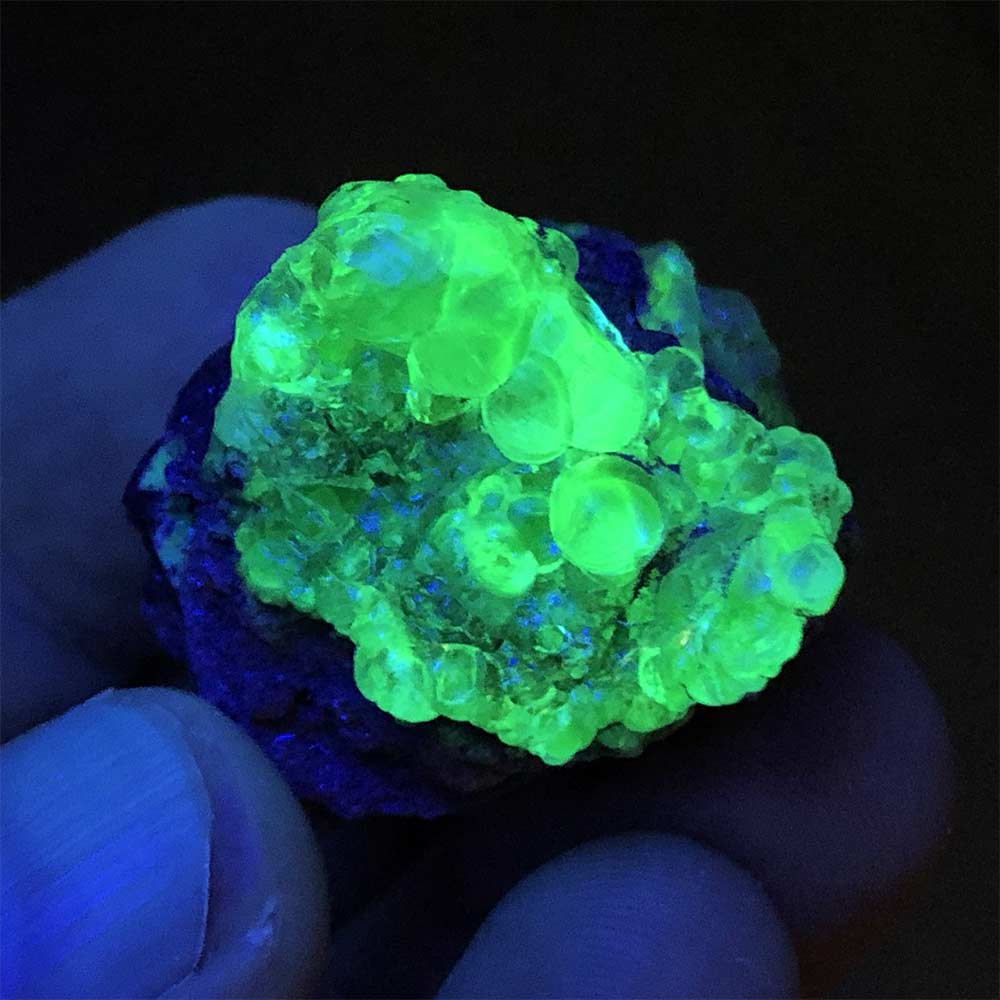 Lo extraordinario de los ejemplares mexicanos es que el uranilo es tan activo que absorbe también las longitudes de onda ultra violetas de la luz solar ordinaria y la convierte en luminiscencia verde visible.